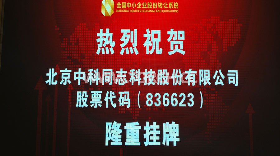 2016年5月4日,北京中科同志科技股份有限公司(以下簡稱“同志科技”)掛牌儀式在北京金融街全國中小企業股份轉讓系統有限責任公司隆重舉行。同志科技成為中國一家以貼片機為主營業務的新三板掛牌公司。